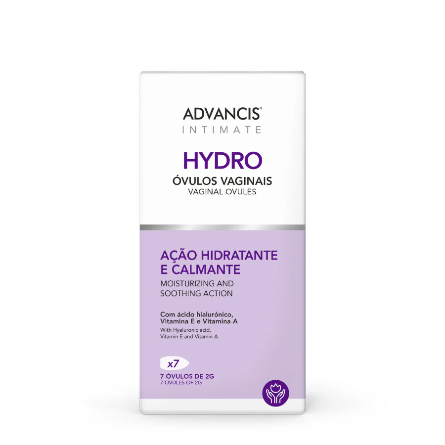 ADVANCIS® INTIMATE HYDRO ÓVULOS VAGINAIS com ação hidratante, protetora e calmante proporciona o alívio das irritações, comichão, ardor e dispareunia, provocados por secreção vaginal deficiente ou ausente.