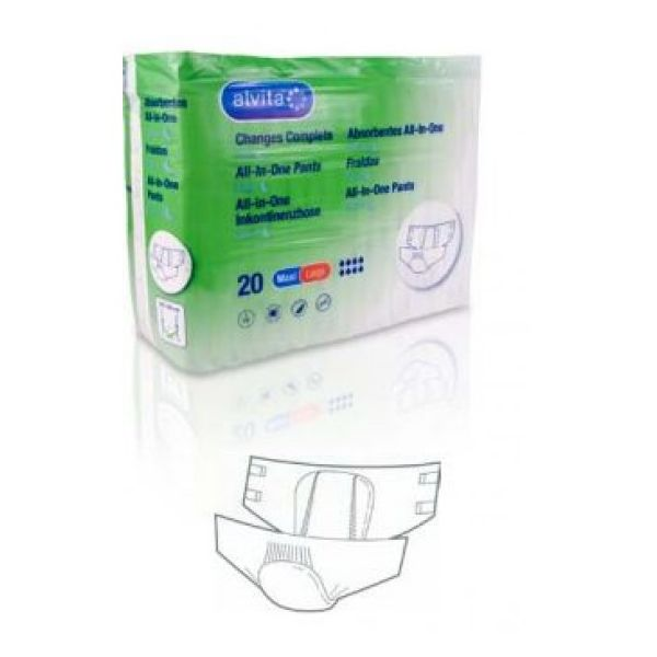 Alvita Fralda Incontinência Super Large 24 unidades, com as melhores cacterísticas, elevada capacidade de absorção, respiráveis, hipoalergénicos, neutralizadores de odor, sem látex e discretos.