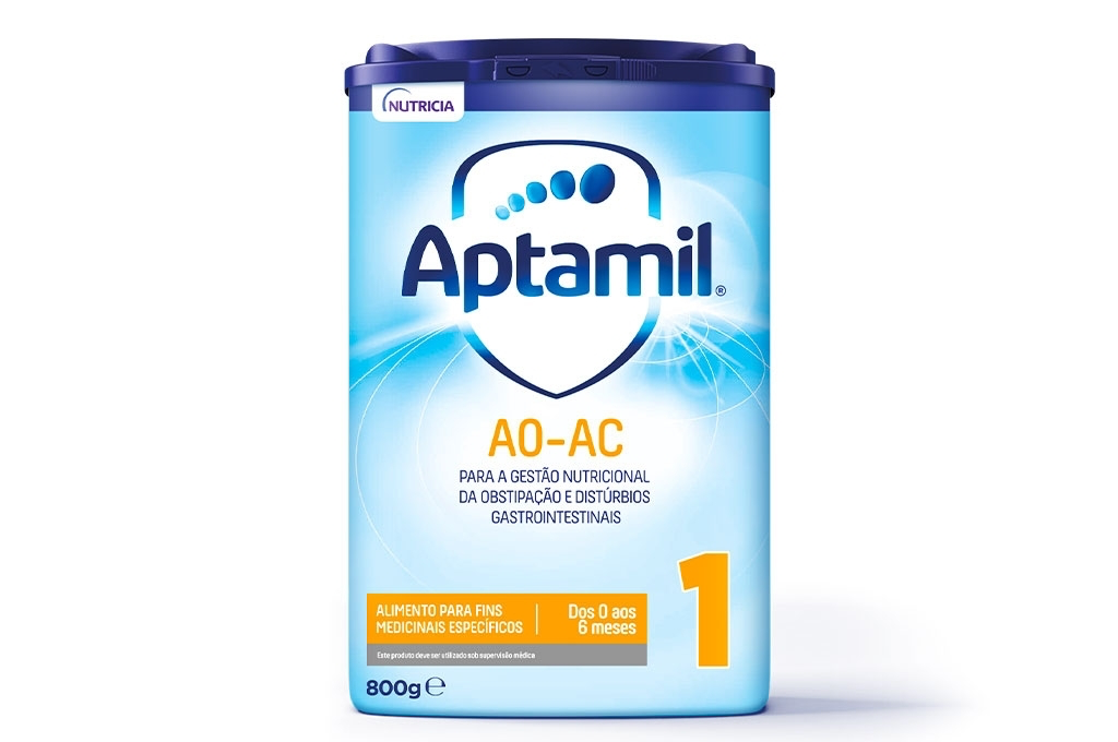 Aptamil® AO-AC 1 é um alimento para fins medicinais específicos indicado para a gestão nutricional de distúrbios gastrointestinais, como a obstipação e cólicas, em lactentes desde o nascimento até aos 6 meses de vida. É um alimento nutricionalmente completo e adequado como fonte alimentar única até aos 6 meses de idade.