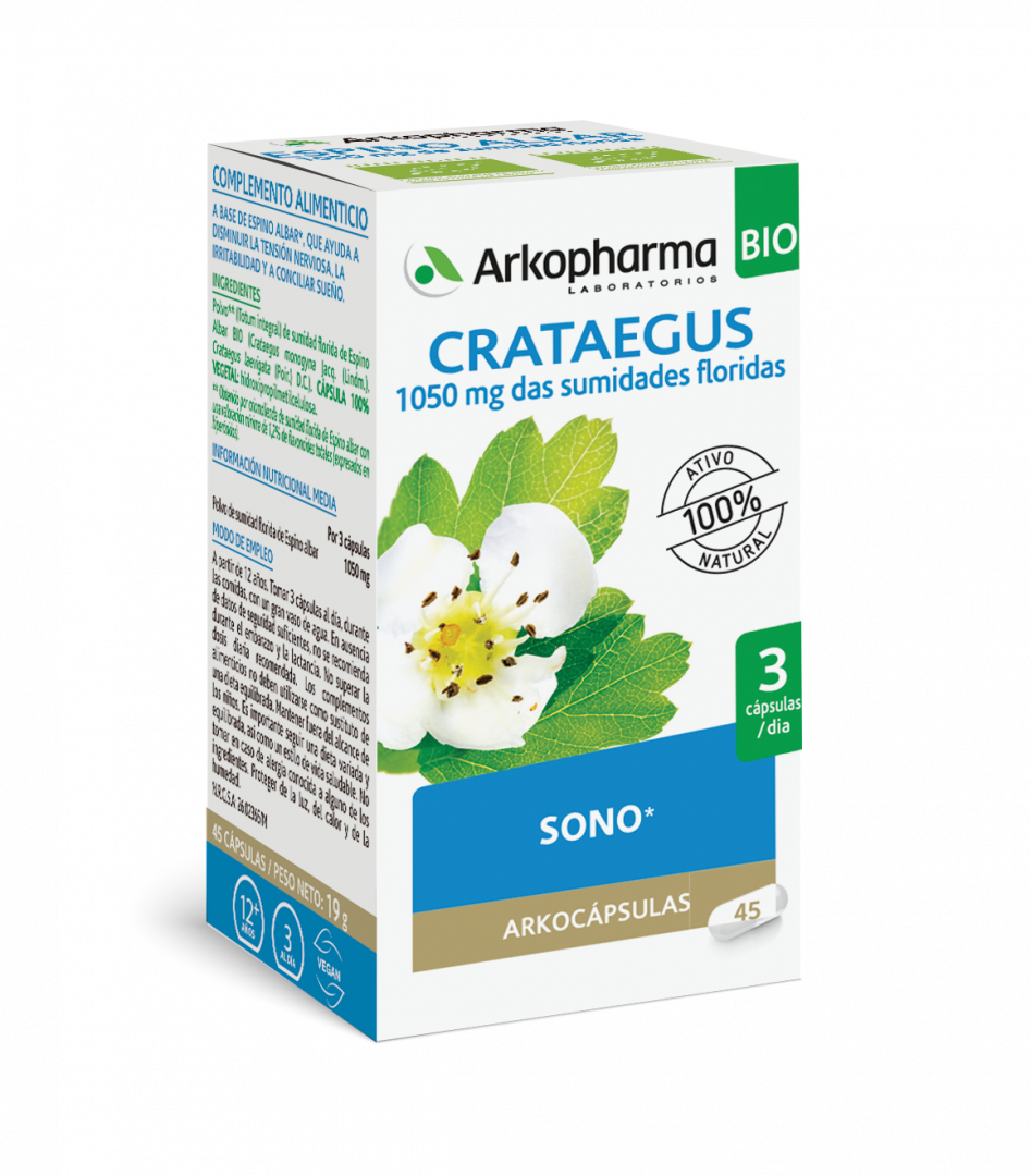 ARKOCÁPSULAS Crataegus é um suplemento alimentar à base de Crataegus. O Crataegus contribui para a diminuição da tensão nervosa, da irritabilidade e ajuda a conciliar o sono.