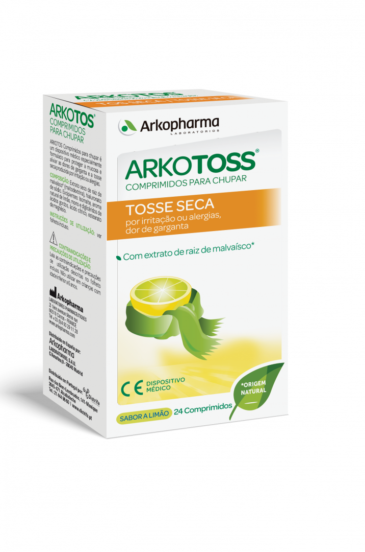 ARKOTOSS® Dispositivo médico especialmente formulado para proteger a mucosa e aliviar as dores de garganta e a tosse seca produzida por irritação ou alergia.