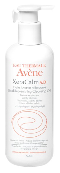 XeraCalm A.D Óleo de limpeza relipidante está especificamente formulado para a pele seca sensível, para bebés, crianças e adultos: de tendência atópica, com prurido e irritações da pele naturalmente seca. SEM SABÃO, SEM PERFUME, pH fisiológico.