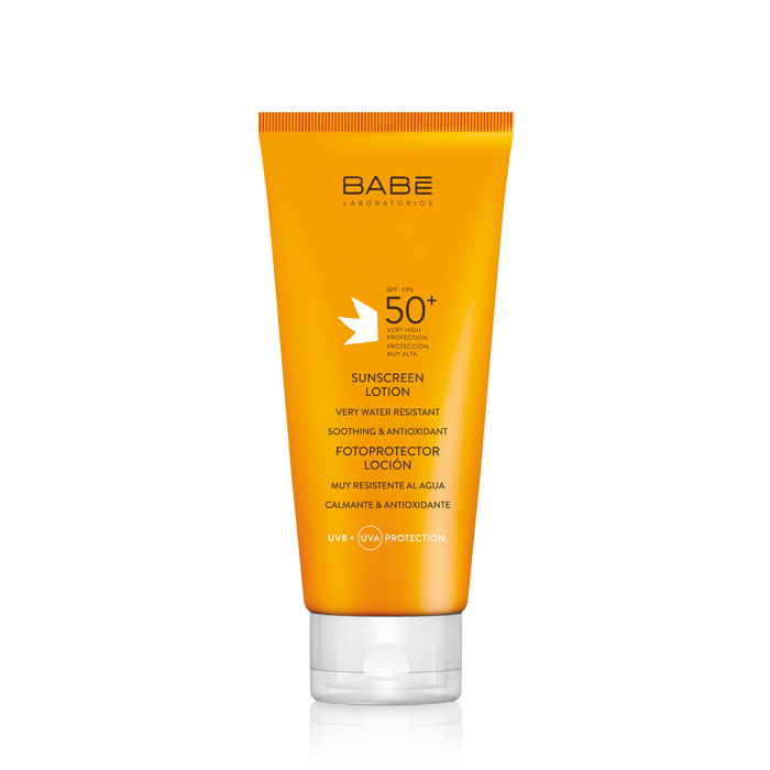Babé Solar Loção Fotoprotetora SPF50+ protege contra radiação UVA e UVB. Possui uma dupla ação calmante e antioxidante, apresentando uma textura ligeira de rápida absorção.Ideal para atividades ao ar livre. Muito resistente à água. Alta resistência cutânea. Sem parabenos, álcool e corantes. Sem óleos minerais. Hipoalergénico. Testado dermatologicamente.