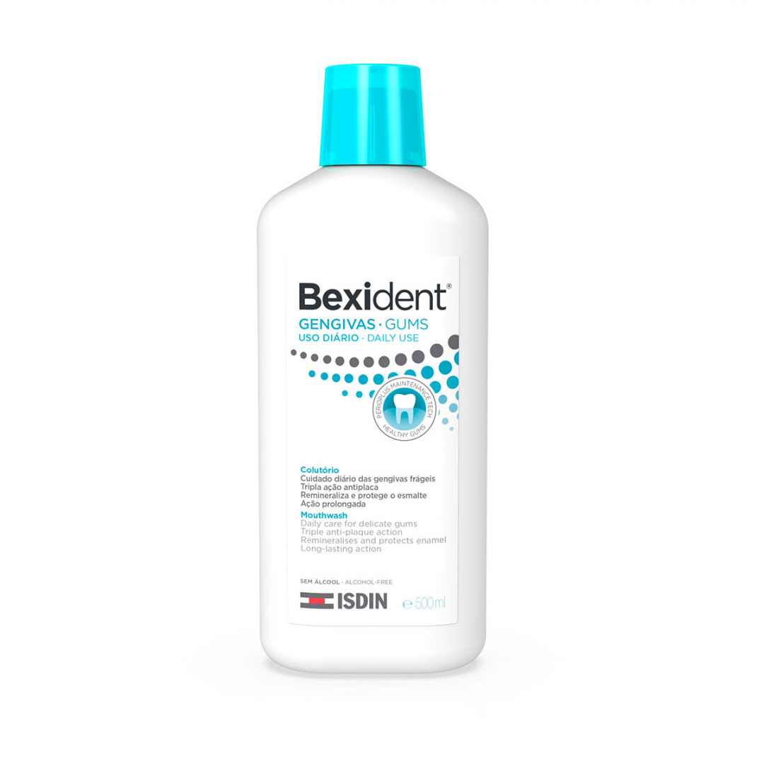 Especialmente indicado para gengivas frágeis e/ou com risco de complicações devido à acumulação da placa dentária. Colutório particularmente indicado como complemento na higiene oral diária durante tratamentos gengivais ou periodontais no período de manutenção, longa duração. Cuidado diário das gengivas frágeis. Tripla ação antiplaca. Remineraliza e protege o esmalte. Ação prolongada.