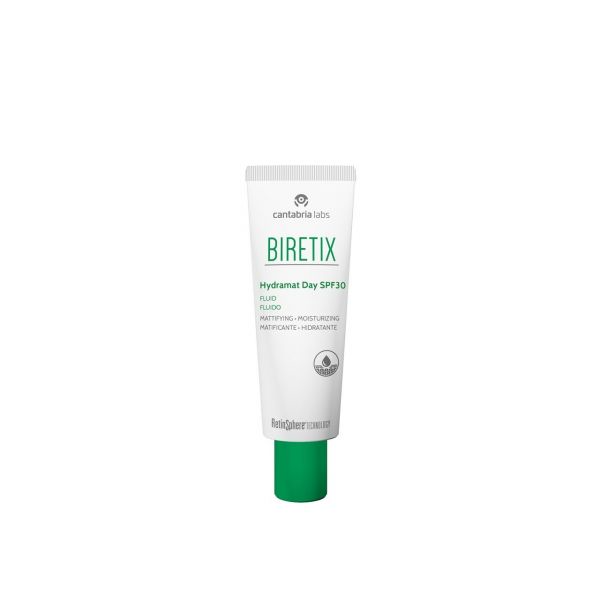 BIRETIX Hydramat Day SPF 30 é um fluido ligeiro oil free de rápida absorção, único no mercado graças à combinação dos seus ativos e Retinsphere® Technology, especialmente indicado para o cuidado diário da pele oleosa ou com tendência acneica. Restaura a hidratação e a função barreira da pele desidratada e sensibilizada, reduz o excesso de sebo e o brilho para ajudar a ter uma pele limpa e saudável para além de prevenir o dano produzido pela radiação UV proporcionando uma proteção solar com SPF30.