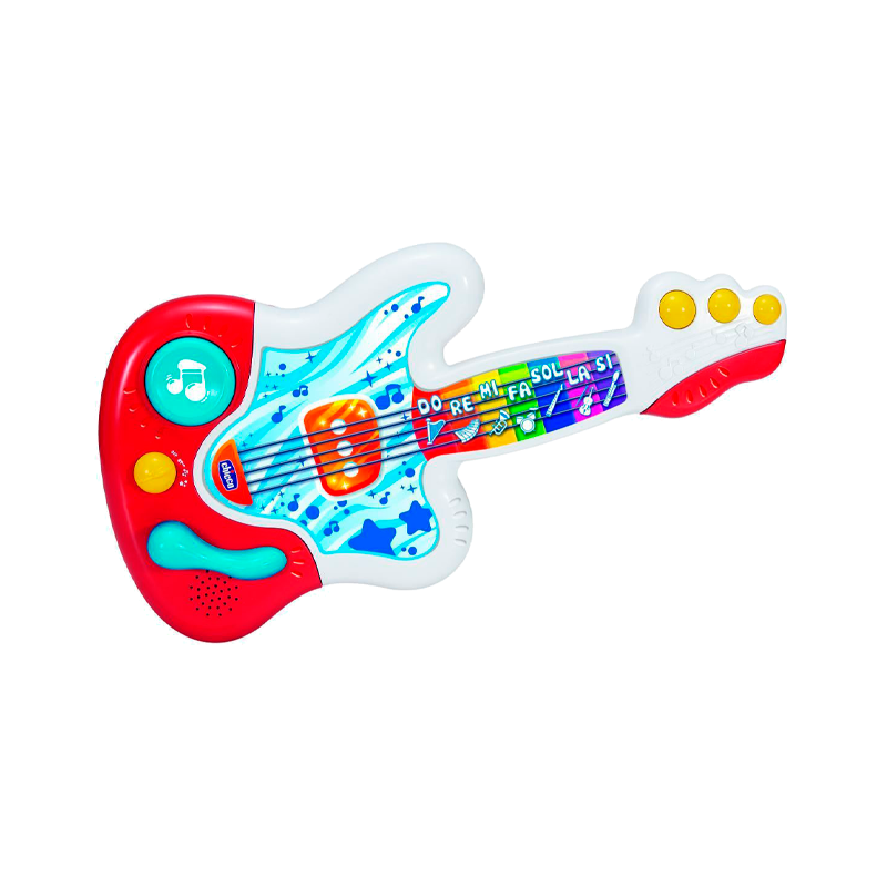 Chicco Happy Music A Minha Primeira Guitarra é uma guitarra eletrônica para descobrir os instrumentos da orquestra e as notas musicais.