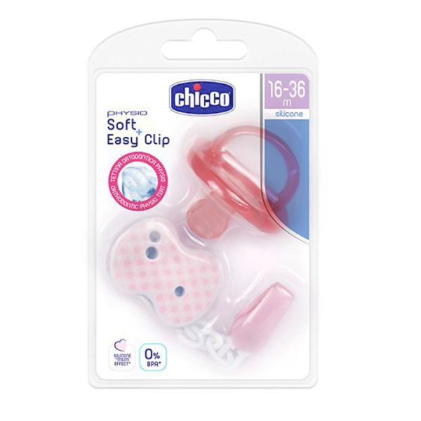 Chicco Pack Physio Soft Chupeta + Clip c/ Corrente Rosa 16-36M