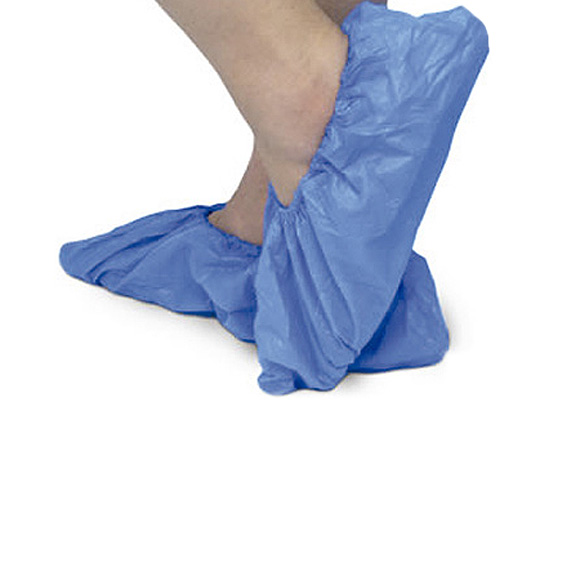 Cobre sapatos descartáveis e impermeáveis em CPE, não esterilizados. Cor azul. Tamanho único. Vendido em embalagem com 100 unidades.