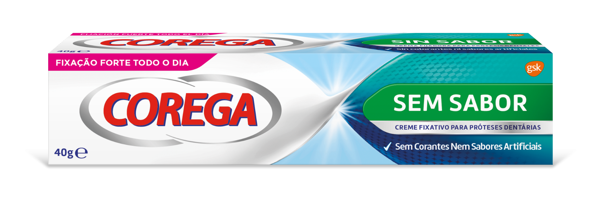 Corega Sem Sabor. Creme Fixativo para próteses dentárias. Fixação forte. Sem adição de sabores ou corantes.Corega Sem Sabor é um creme fixativo que proporciona uma fixação forte todo o dia. Não altera o sabor dos alimentos.