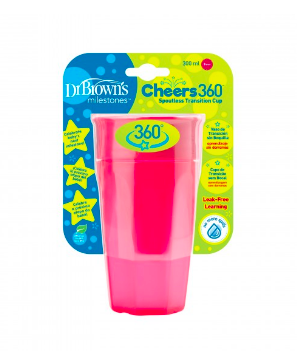 Dr. Brown's Cheers 360 Copo Transição S/Bocal Rosa 9M+ permite ao seu bebé beber por qualquer um dos lados do copo.