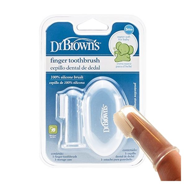 A escova de dentes de dedo Dr. Brown's ™ limpa suavemente as gengivas do bebé e os dentes emergentes. A escova 100% de silicone é super macia e a sua dupla face permite limpar suavemente e massajar as gengivas sensíveis do bebé e os dentes emergentes. Pode ser usada com ou sem dentífrico infantil.