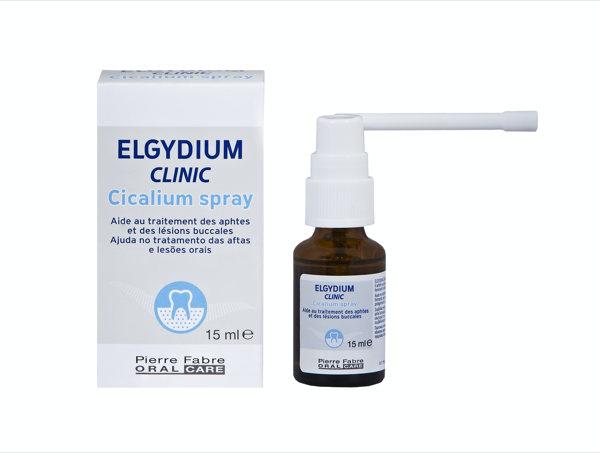 ELGYDIUM CLINIC CICALIUM SPRAY é um cuidado protetor e cicatrizante que alívia a dor e favorece o tratamento de aftas e outras lesões orais. O formato em spray permite uma aplicação extensa, em zonas de difícil acesso ou extremamente sensibilizadas.
