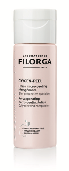 Loção micropeeling reoxigenante. Loção micropeeling reoxigenante para textura irregular, poros dilatados, rídulas e falta de luminosidade. Com a ajuda de um disco de algodão, aplicar no rosto perfeitamente limpo apenas à noite.