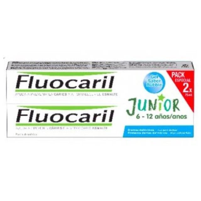 Fluocaril Júnior Duo Gel dentífrico Bubble Gum 6-12 Anos 2 x 75 ml com Oferta da 2ª Embalagem