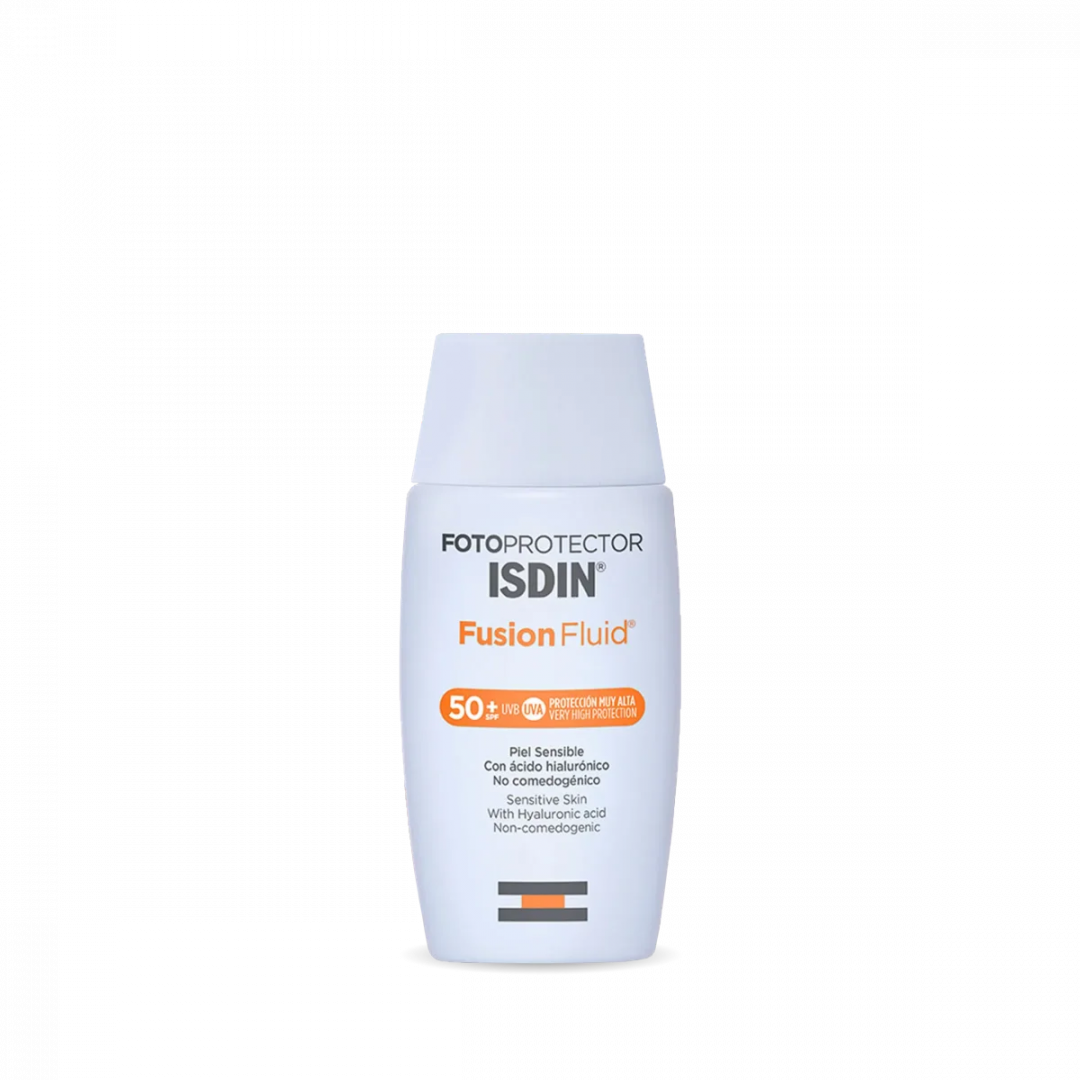 Fotoprotector ISDIN Fusion Fluid com fator de proteção solar muito elevado SPF50+ é uma emulsão ultraligeira que se funde com a pele. A sua textura fluida permite uma aplicação fácil, tendo uma absorção imediata. Este protetor não deixa secar a pele e deixa-a sem brilho.
