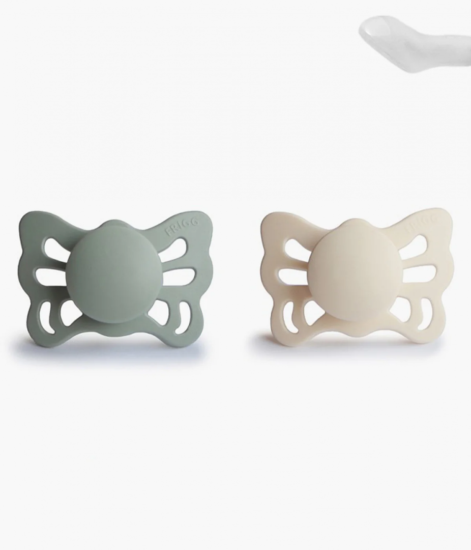 Frigg Butterfly Chupeta Silicone 0-6M Cream/Sage x 2