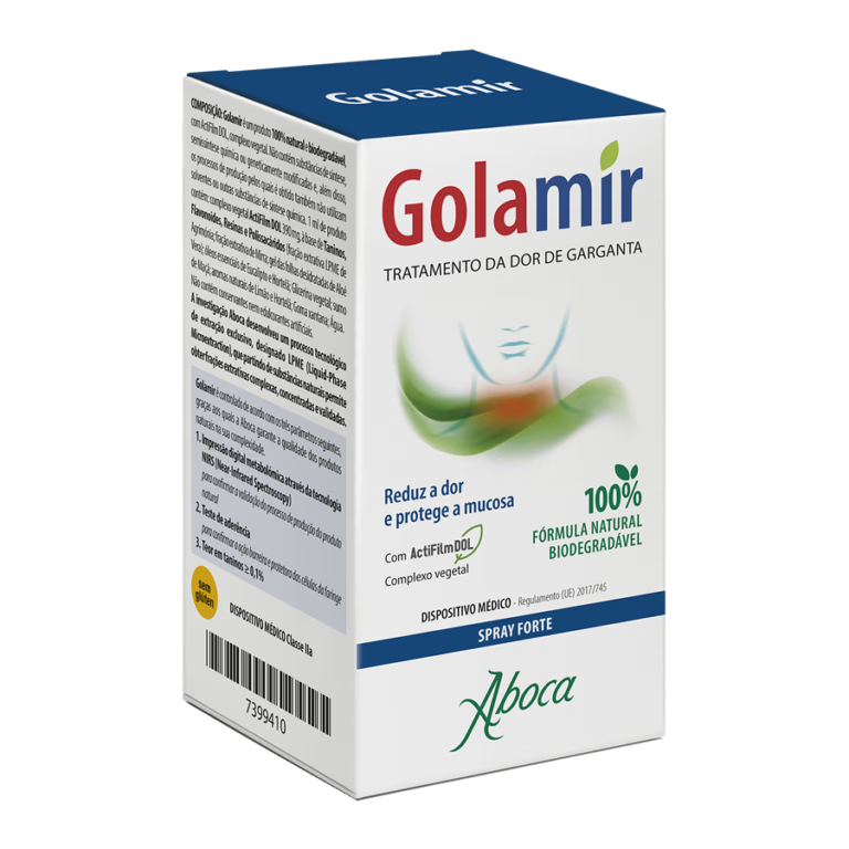 Golamir Spray atua contra dor, ardor e dificuldade de deglutição, protegendo a mucosa orofaríngea dos fatores que causam a irritação (vírus, bactérias, alergénios, fumo, poluição, pó).