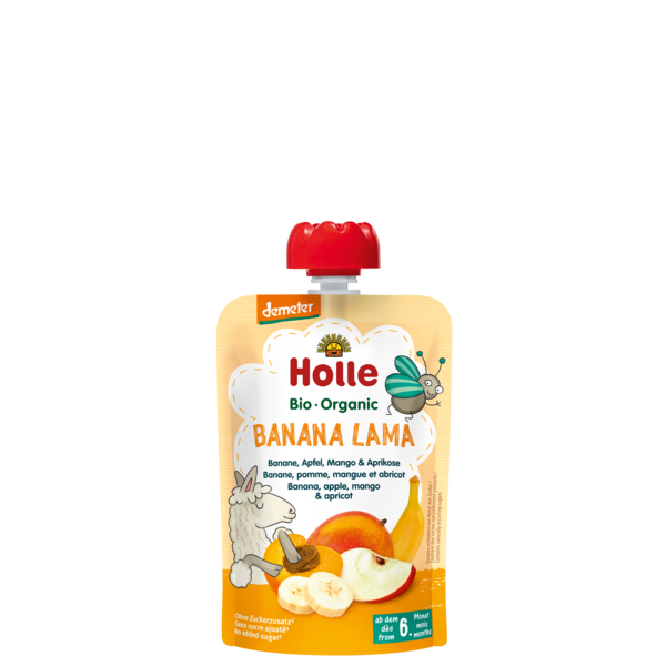 Holle Bio Puré Saqueta Banana + Maçã + Manga + Alperce 6m+ 90G