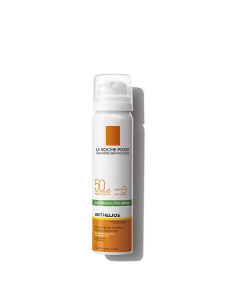 La Roche-Posay Bruma de Rosto Antibrilho SPF50 é uma bruma com proteção solar muito elevada e efeito anti brilho matificante. Adequado para pele sensível e intolerante, especialmente indicado para pele oleosa. Na sua fórmula contém:
