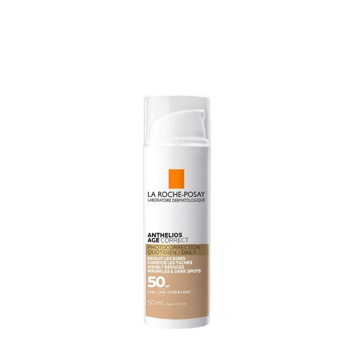 La Roche Posay Anthelios Age Correct SPF50+ Creme Cor é um protetor solar com cor que ajuda a hidratar e a proteger eficazmente contra os raios solares e fotoenvelhecimento.