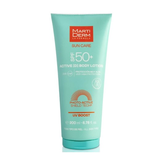 Martiderm Sun Care Active D Loção Corporal SPF 50+ 200 ml, leve e de rápida absorção. Fotoprotetor para toda a família.