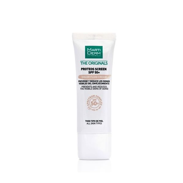 Descrição:O novo creme Proteos Screen SPF 50+ Color Fluid Cream é a versão com microesferas de cor do creme Proteos Screen SPF 50+. Também de fácil absorção, previne e ajuda a reparar os sinais do envelhecimento cutâneo prematuro. A cor surge ao aplicar a emulsão sobre a pele com uma suave massagem, libertando um tom natural que se adapta a todos os tipos de pele, melhorando o seu aspeto. A sua textura Cream-to-Powder confere à pele uma sensação sedosa e invisível. Também fornece uma proteção de amplo espectro face aos raios UVA/UVB/IV/HEV (luz azul). A combinação de proteoglicanos, Spectrum Complex e o complexo de ácido hialurónico e silício ajuda a manter a pele com um aspeto jovem, fresco e uniforme.