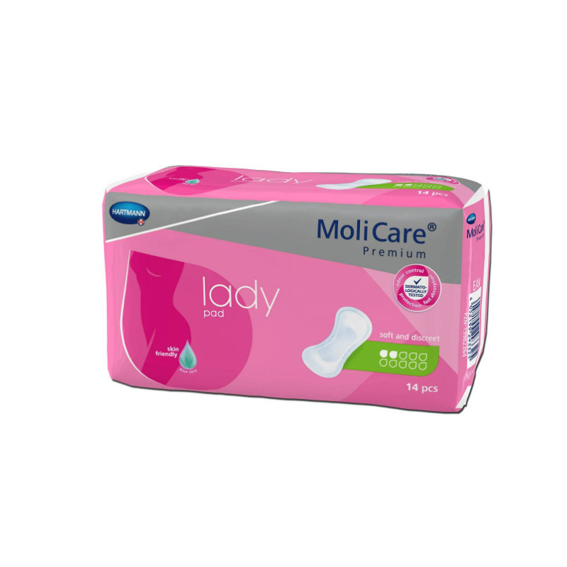 Molicare Lady Pad 2 Gotas x14 são pensos absorventes femininos, anatomicamente moldados, para perdas de urina. Proporcionam proteção, conforto e segurança, mantendo a pele saudável.
