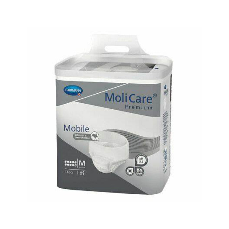 Molicare Premium Mobile 10 Gotas Cueca M x14 estão indicadas em casos de incontinência urinária muito severa. Cuecas unisexo descartáveis com núcleo absorvente e barreiras antifugas.