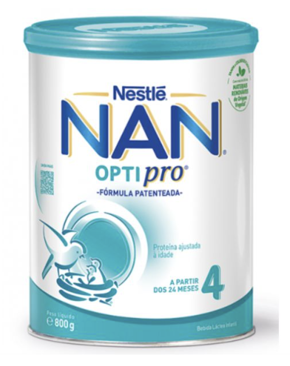 NAN OPTIPRO® 4 é uma bebida láctea infantil (leite de crescimento) para crianças a partir dos 24 meses de idade como parte líquida da sua alimentação, antes da introdução do leite de vaca. NAN OPTIPRO® 4, em combinação com uma dieta equilibrada, proporciona uma composição nutricional e energia adequadas a esta importante fase de crescimento e desenvolvimento.
