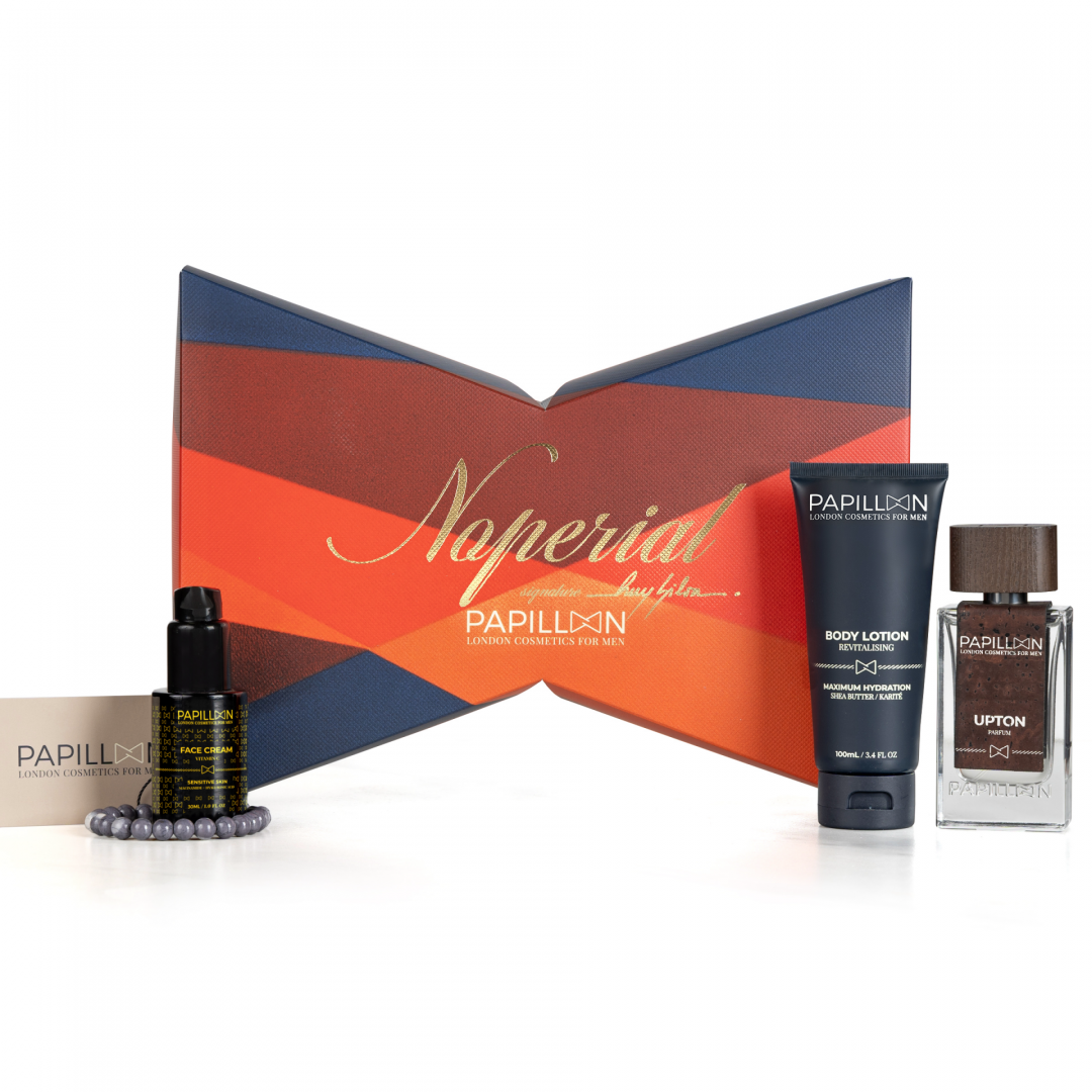 Apresentamos com entusiasmo a nova Gift Box da marca Papillon, um conjunto cuidadosamente selecionado de produtos de cosmética exclusivamente projetados para o homem moderno, perfeitamente complementados por uma pulseira única. Este pacote não apenas realça a sua beleza e confiança, mas também traz um toque de arte para o seu cotidiano, graças à colaboração especial com o talentoso artista plástico Ruy Silva na decoração da caixa em formato Papillon.
