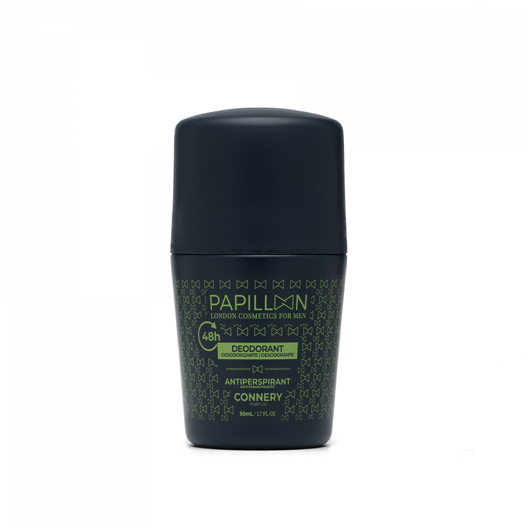 Desodorizante com 48h de proteção. Perfumado com fragrância CONNERY, antiodor, transparente e antimanchas. Adequado para todos os tipos de pele.