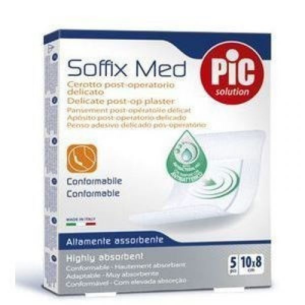 Pic Solution Soffix Med Pensos Pós-Operatório são de um material altamente transpirante e extensível, para se adaptarem às diferentes partes do corpo. Têm uma absorção elevada e uma película microperfurada para que não se colem à ferida. Apresentam clorohexidina na sua composição que tem uma ação antibacteriana, evitando a contaminação de feridas.