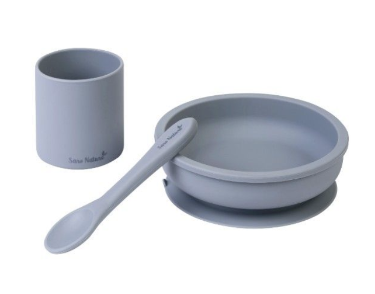 Saro Conjunto Alimentacao Party Prato + Copo + Colher Cinza Escuro 1741