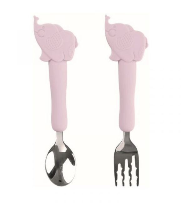 Saro Talheres Infantis Metal Elefantes Rosa 1746