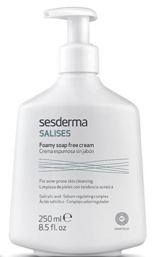 Sesderma Salises Creme Espumoso sem Sabão é indicado para a higiene facial das peles seborreica ou com acne.