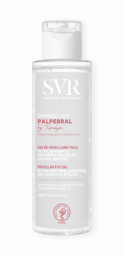 PALPEBRAL by TOPIALYSE DEMAQUILLANT YEAUX é um gel micelar ultrassuave para as pálpebras sensíveis, secas e fragilizadas. Adequado para quem usa lentes de contacto.