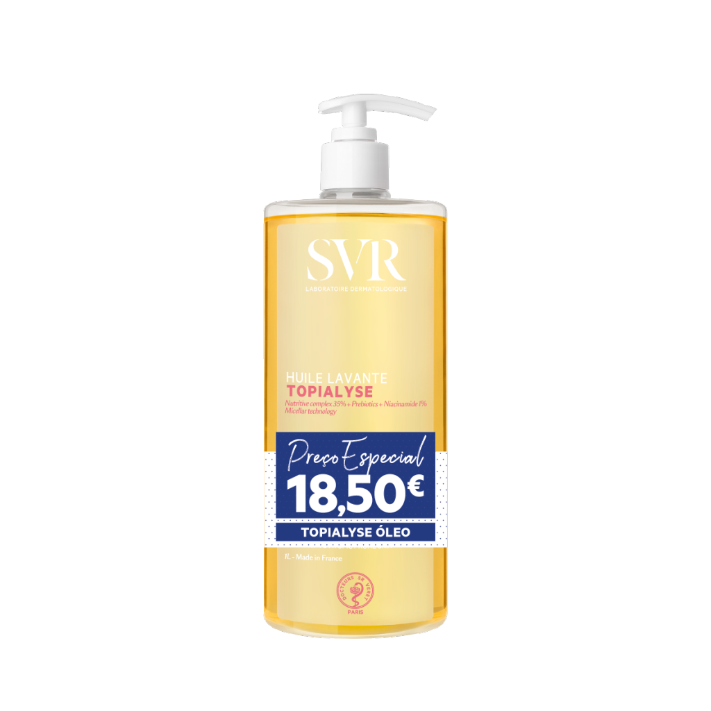 O óleo lavante Topialyse Micelar da marca SVR conta com uma fonte de ómegas 3, 6, 9 o que permite repor o equilíbrio da barreira cutânea.