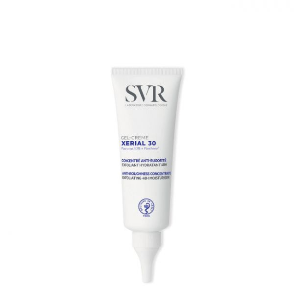 Xerial 30 GEL- CREME, indicado para antirrugosidades e foliculites. Esfoliante hidratante 48h. Indicado para: queratose pilar, rugosidades, psoríase. Embalagem com 28% de plástico reciclado