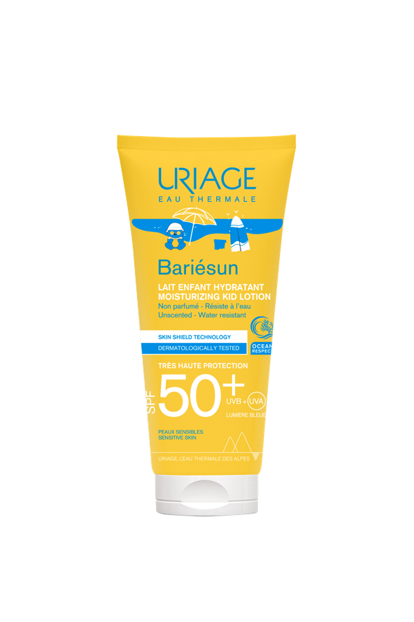 Enriquecido com Água Terma de Uriage e Aquaspongines, oferece proteção elevada contra a desidratação e hidrata profundamente a pele delicada das crianças.