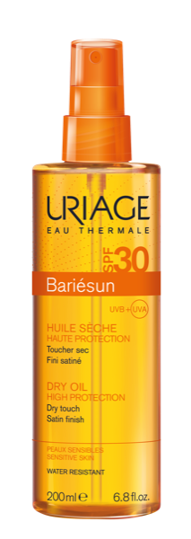 Bariésun combina um complexo filtrante com elevada eficácia e duas patentes dermatológicas para proteger a pele e prevenir os danos celulares provocados pelos raios UVA e UVB e pela luz azul. Com uma textura agradável, não oleosa, Bariésun Óleo Seco SPF30 suaviza a pele e ilumina o bronzeado. Também pode ser aplicado no cabelo para o proteger da secura e preservar a sua beleza natural. Proteção contra os raios UV O seu complexo filtrante oferece proteção muito elevada contra os raios UVA e UVB e radicais livres. Fotoproteção muito elevada A patente forma um filme protetor na pele para limitar a penetração dos filtros UV na superfície da epiderme e otimizar a fotoproteção Ação hidratante Enriquecida com Aquaspongines e Água Termal de Uriage, oferece proteção elevada contra a desidratação. ABORDAGEM ECO-FRIENDLY: Compromisso com o planeta: Os Laboratórios Dermatológicos de Uriage são membros do 1% for the Planet, com o compromisso ético de apoiar as ONGs que trabalham em prol do meio ambiente. 1% dos lucros de Bariésun revertem a favor desta causa. Embalagem eco-responsável: - Garrafa reciclável.