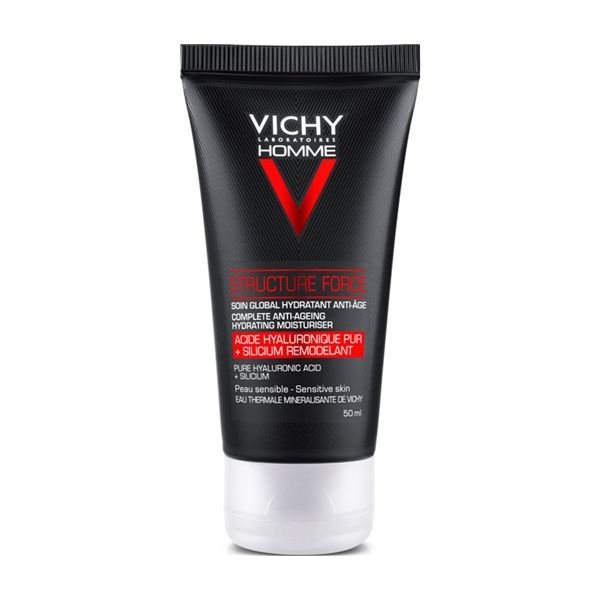 Vichy Homme Structure Force é um cuidado de rosto anti-idade para homem que combate os principais sinais de envelhecimento: rugas, perda de firmeza e flacidez. Indicado para todos os tipos de pele, incluindo pele sensível. Adequado ao contorno dos olhos. Na sua fórmula contém:
